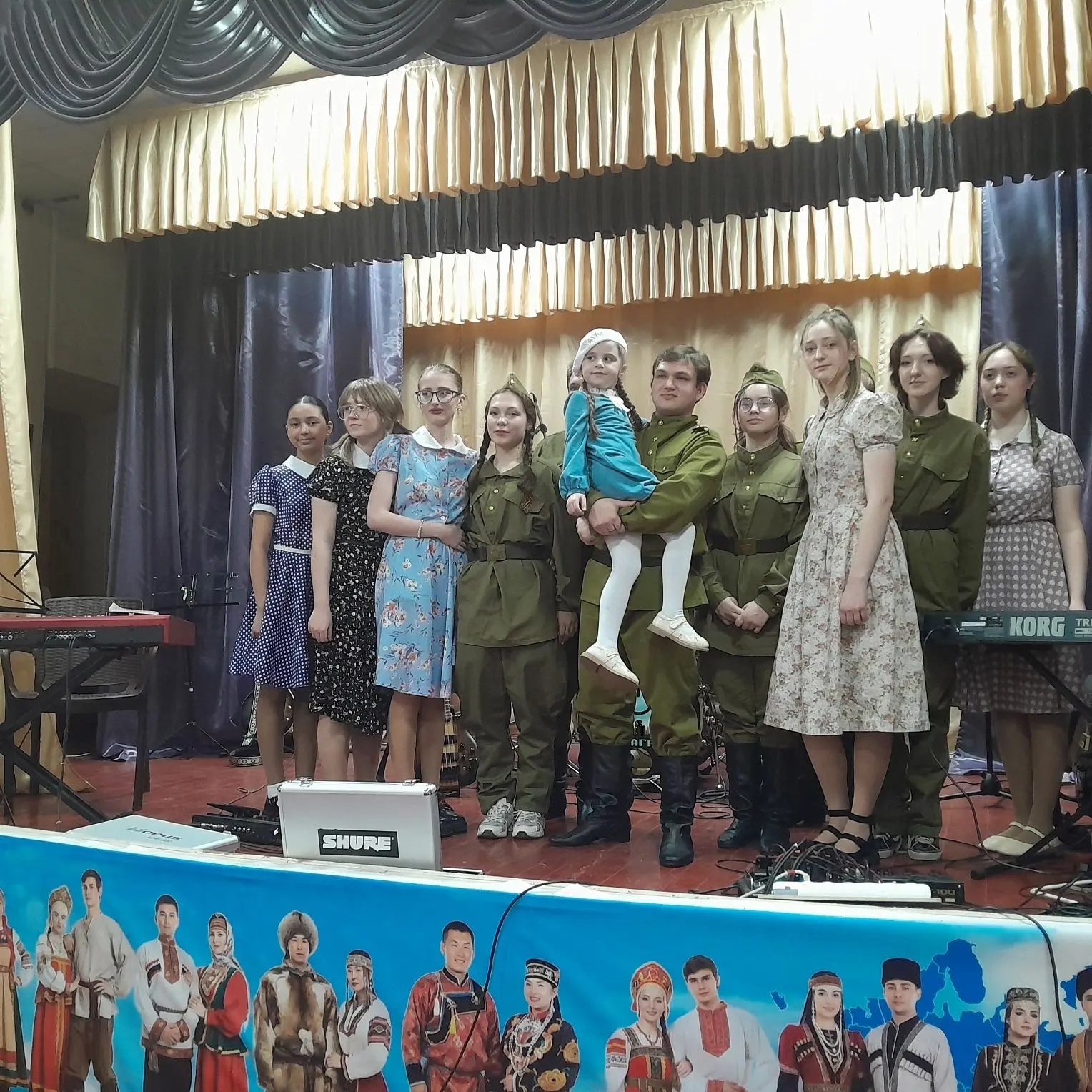 Здесь его встретили так же тепло и душевно. В честь 81-й годовщины Великой Победы — священной даты, которая навсегда вписана в историю нашей страны — для жителей села выступили артисты с концертом. Живая музыка звучала не для галочки: каждый аккорд шёл от сердца, каждая песня напоминала о том, через что пришлось пройти нашим дедам и прадедам ради мирного неба.