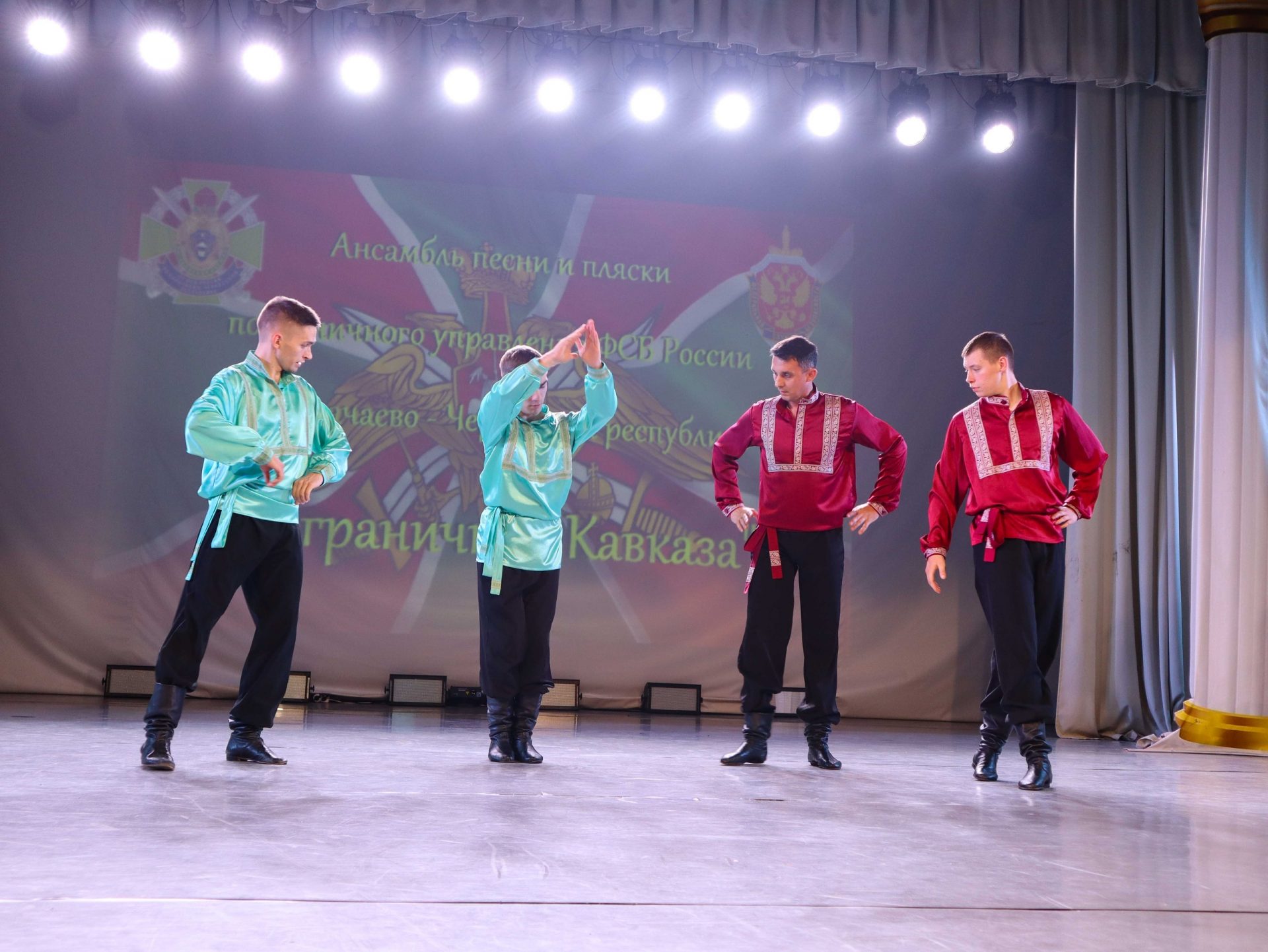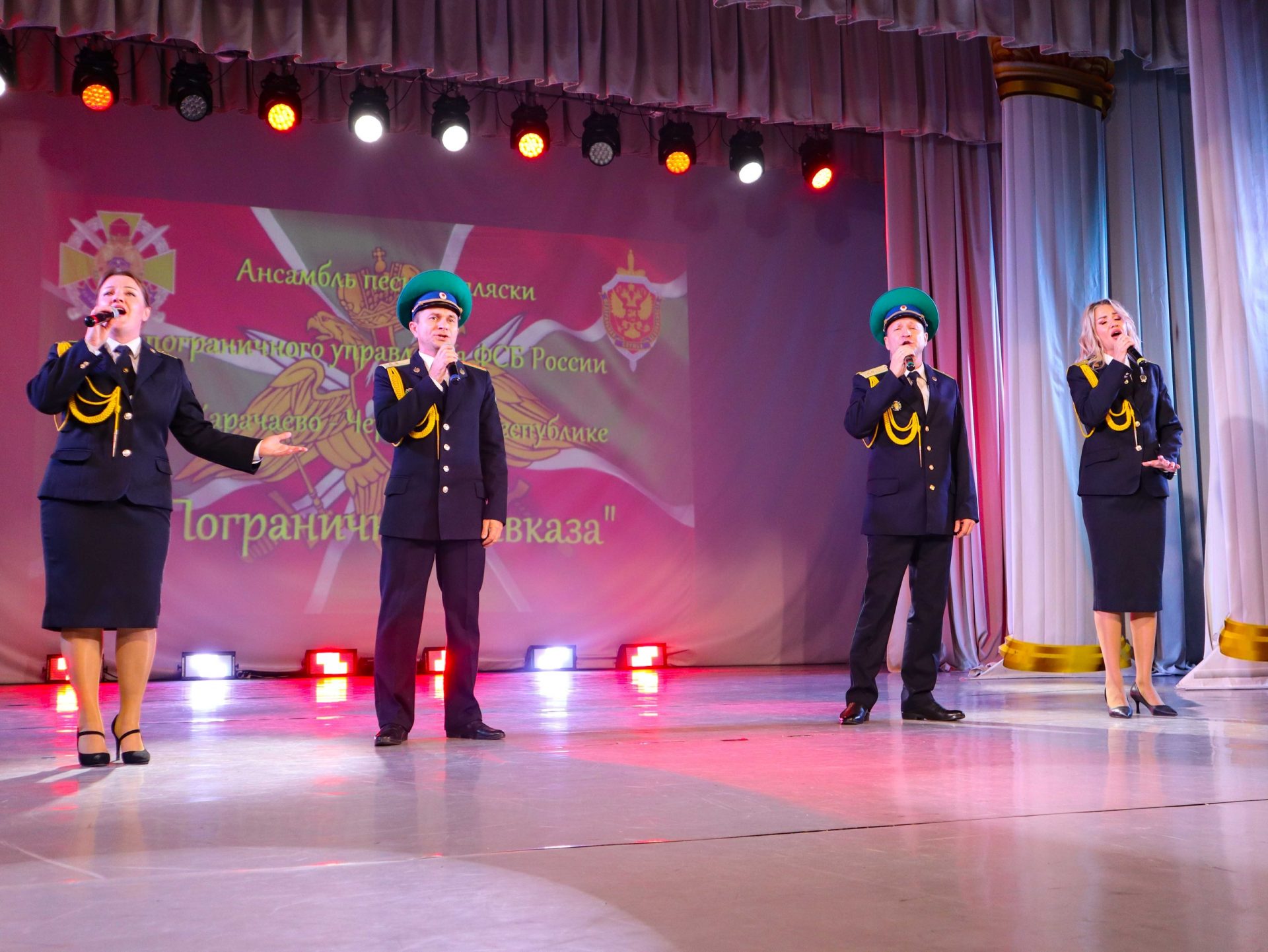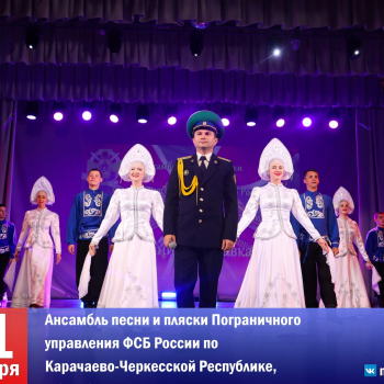 27Сегодня в районном Дворце культуры прошел незабываемый вечер, наполненный гордостью и величием! На сцене РДК выступил легендарный Ансамбль песни и пляски «Пограничник Кавказа» — прославленный коллектив пограничного управления ФСБ России по Карачаево-Черкесской республике.