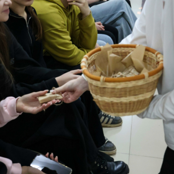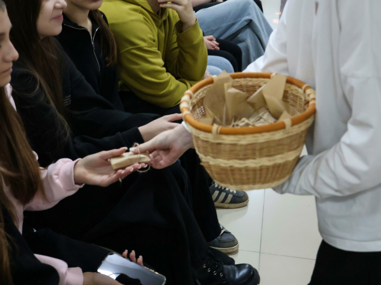 Одним из самых эмоциональных моментов стала акция «Блокадный хлеб». Активисты первичного отделения РДК «Движения Первых» раздали каждому участнику символический кусочек хлеба — размером со спичечный коробок. Эти 125 граммов, ставшие в те годы единственной надеждой на жизнь, напомнили всем присутствующим о подлинной цене Победы.