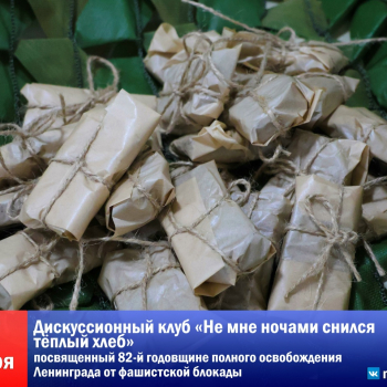 9К 82-й годовщине полного освобождения Ленинграда от фашистской блокады состоялось заседание дискуссионного клуба под названием «Не мне ночами снился тёплый хлеб».