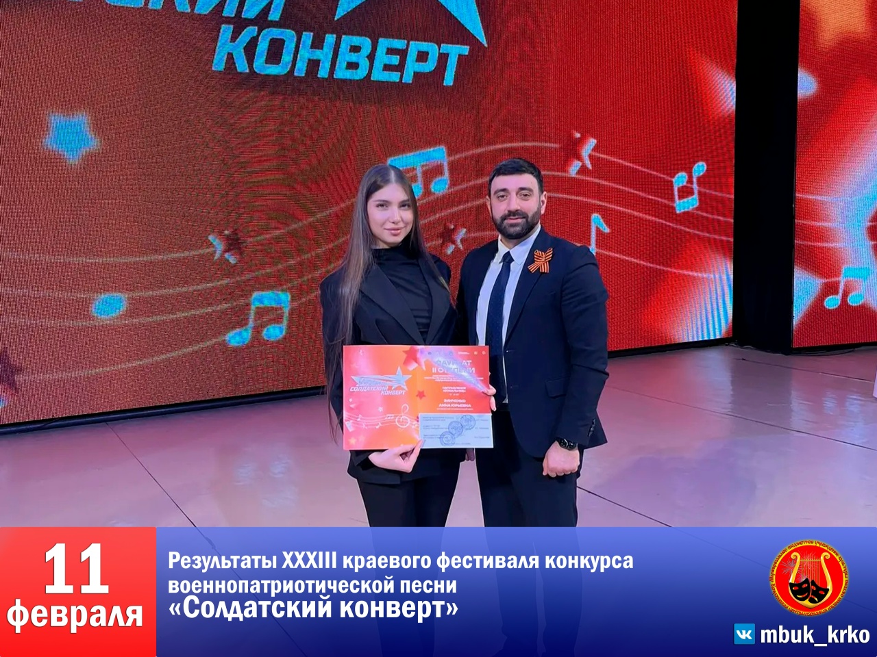 2В городе Ставрополе были объявлены результаты XXXIII краевого фестиваля‑конкурса военно‑патриотической песни «Солдатский конверт». Все артисты, представлявшие округ на краевом этапе, вернулись домой с призовыми местами и дипломами.