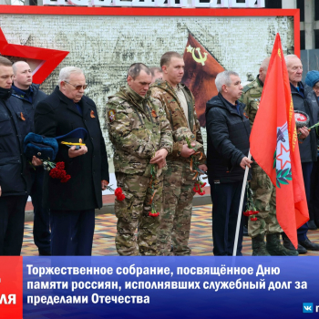 3У мемориала воинам-интернационалистам состоялось торжественное собрание, посвящённое Дню памяти россиян, исполнявших служебный долг за пределами Отечества.