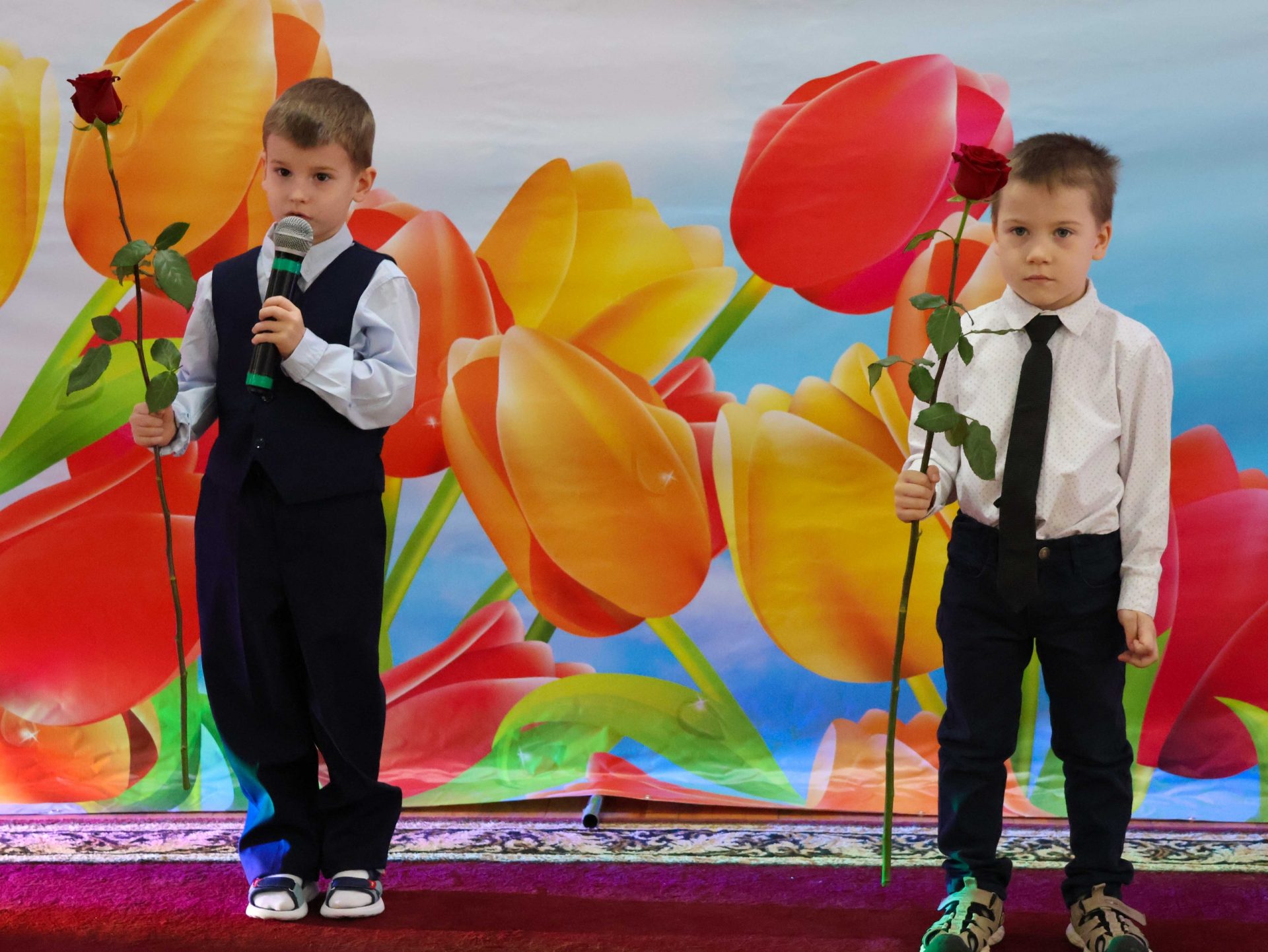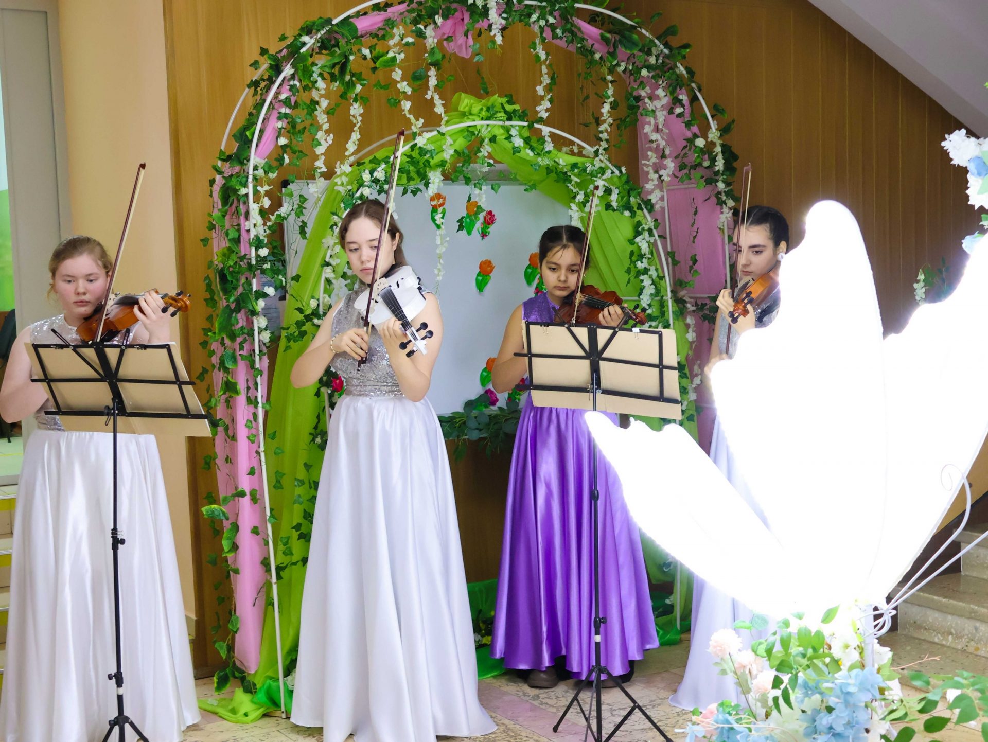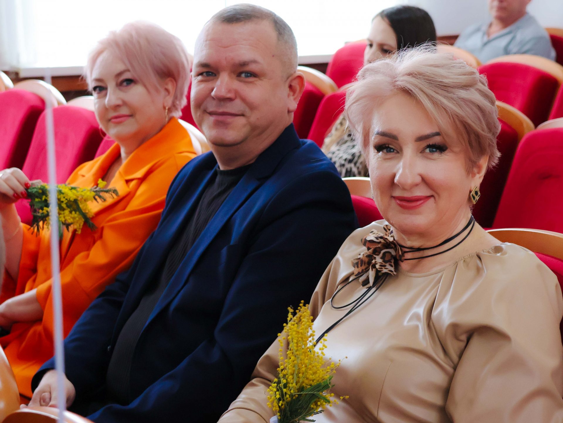 С первых шагов в здание администрации гости попадали в атмосферу весенней сказки. В фойе прекрасных дам встречал ансамбль скрипачей, фотозоны, оформленные в нежных весенних тонах. Но самым трогательным подарком стали первые весенние цветы. Каждой женщине вручали букетик ароматной мимозы с маленькими, но теплыми и искренними посланиями.