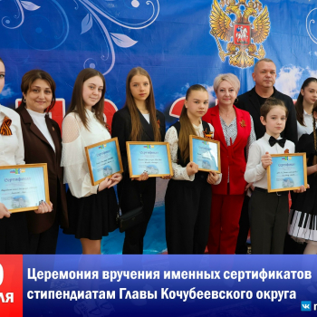 Эта почётная стипендия учреждена для поддержки самых талантливых и целеустремлённых ребят — лучших обучающихся образовательных учреждений Кочубеевского муниципального округа и активных участников клубных формирований учреждений культуры.