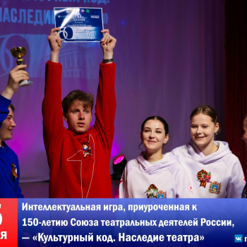 10В сельском Доме культуры «ЛУЧ» состоялось яркое событие, приуроченное к 150‑летию Союза театральных деятелей России, — интеллектуальная игра «Культурный код. Наследие театра». За звание самых эрудированных сражались школьники Кочубеевского округа.
