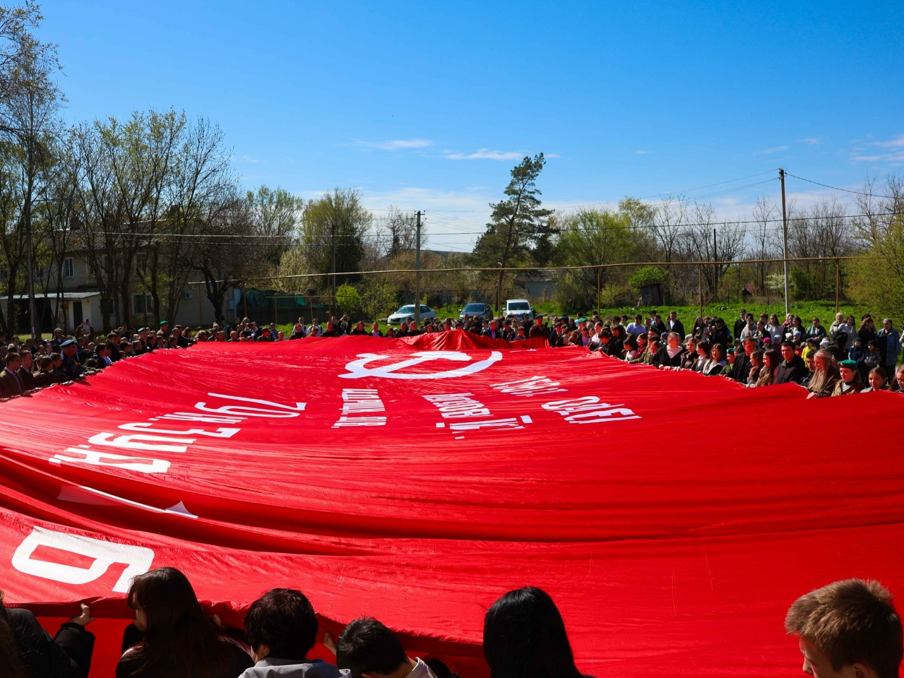 Незабываемым моментом мероприятия ежегодно становится разворот копии Знамени Победы на площадях и в парках.