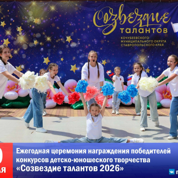 Пусть энергия этих ярких ребят и дальше служит на благо малой родины, а впереди их ждут ещё более впечатляющие победы! Мы верим, что каждый из них сохранит в сердце любовь к родному Кочубеевскому округу и однажды вернётся сюда, чтобы поделиться своим опытом и вдохновением с новыми поколениями.
