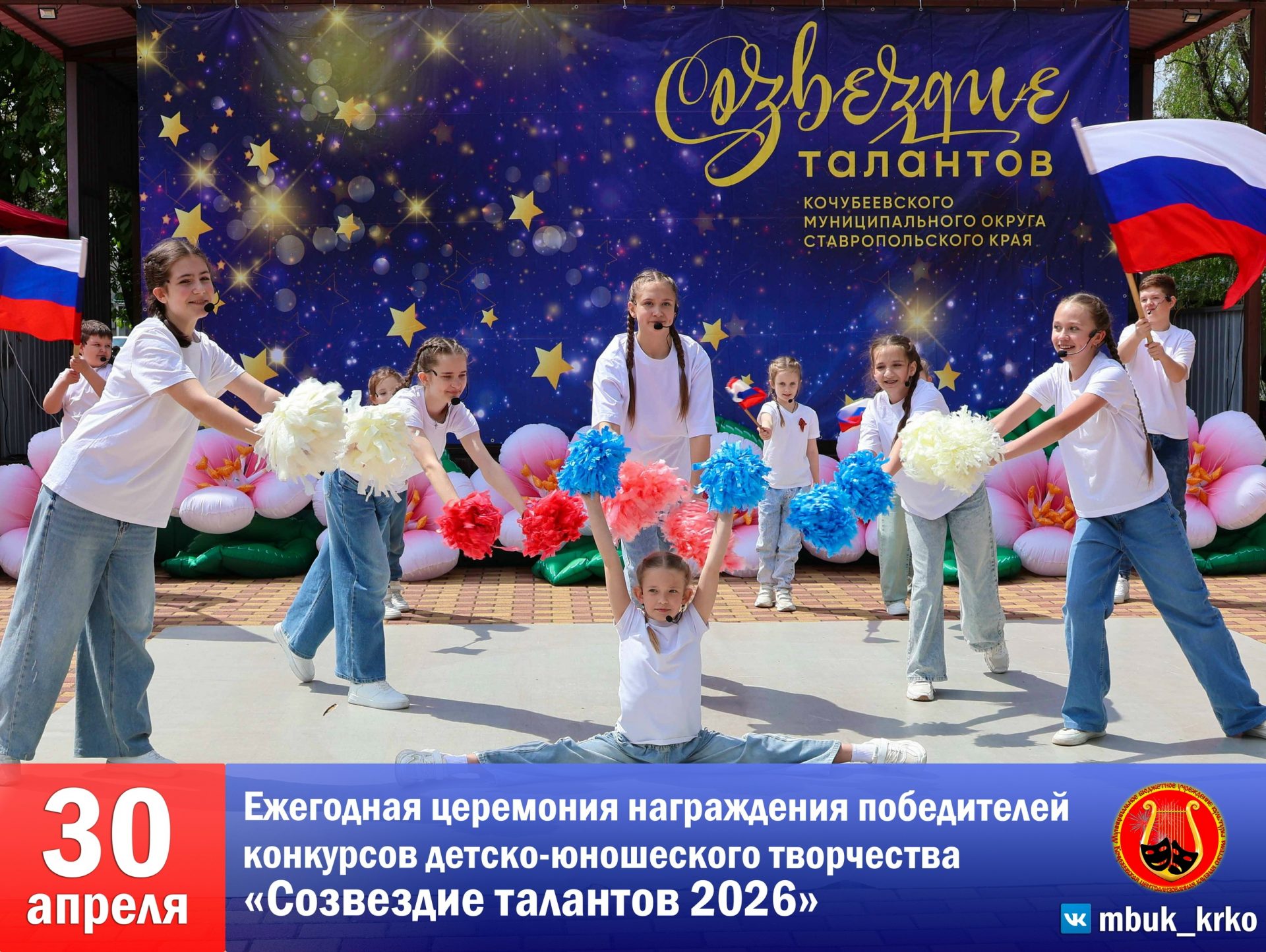 5В центральном парке села Кочубеевского состоялась ежегодная церемония награждения победителей конкурсов детско‑юношеского творчества «Созвездие талантов 2026».
